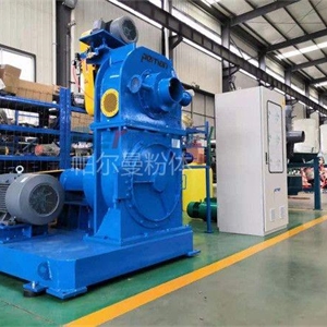 負(fù)壓空氣研磨系統(tǒng)的設(shè)備積垢問題經(jīng)常是討論的焦點(diǎn)。設(shè)備的清洗,特別是輸送風(fēng)機(jī)的清洗過于耗時。此外,在開機(jī)和關(guān)機(jī)過程中風(fēng)機(jī)葉輪上的積垢還可能剝落,導(dǎo)致風(fēng)機(jī)的振動及其運(yùn)轉(zhuǎn)狀態(tài)的振蕩。因此可考慮由負(fù)壓流程改為正壓流程。在新的工作模式下風(fēng)機(jī)安裝在分級磨之前,將工藝空氣壓入研磨系統(tǒng)。這種工作模式的優(yōu)點(diǎn)是研磨后的碳酸氫鈉不通過風(fēng)機(jī)運(yùn)輸,完全避免了風(fēng)機(jī)的積垢問題。此外風(fēng)機(jī)的耗電也有所降低,使經(jīng)營成本更低,但是對設(shè)備的密封性能提出了更高的考驗(yàn),無論是設(shè)備的設(shè)計結(jié)構(gòu)、加工精度及配合都有嚴(yán)格的要求,設(shè)備的造價成本也會更高。