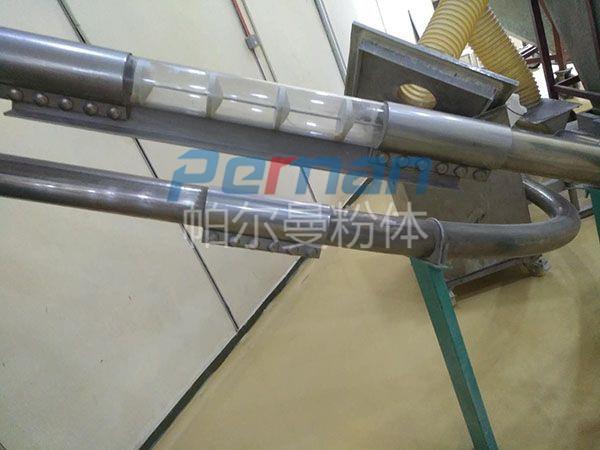 帕爾曼粉體設備設計生產的這種鋼絲繩管鏈輸送機包括自動箱(從動箱)、8齒鏈輪、電機減速機、帶盤片的運送鏈條,輸料管道。所述自動箱(從動箱)兩邊均設置有支管,支管與自動箱(從動箱)均相連通,8齒鏈輪裝置于自動箱(從動箱)內,所述輸料管形狀為曲折形,經過法蘭銜接。輸料管兩端與自動箱(從動箱)兩邊設置的支管別離相連通地對應銜接,運送鏈穿過輸料管和支管內孔與自動鏈輪相傳動銜接。