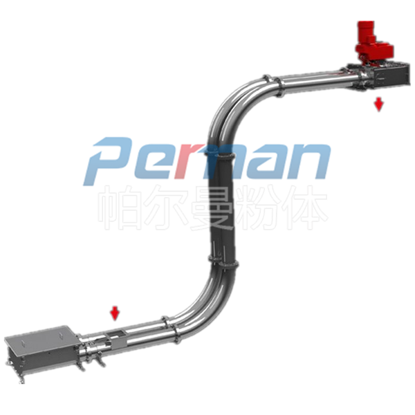 3 被輸送的物料從進口到出口法蘭之間是處于密閉狀態的。出口不必設置除塵器。 在輸送物料時可充裝氣體。運輸中能保證沒有粉塵泄漏到環境中。