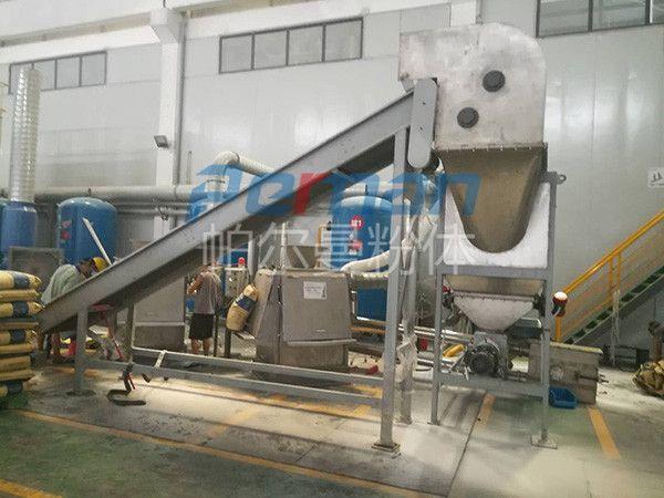 4、設備經過特殊設計,殘破包裝袋與物料完美分離,不會摻雜到物料中,也不會掛在分離裝置里。